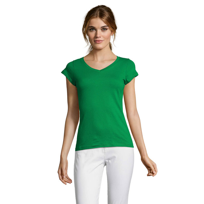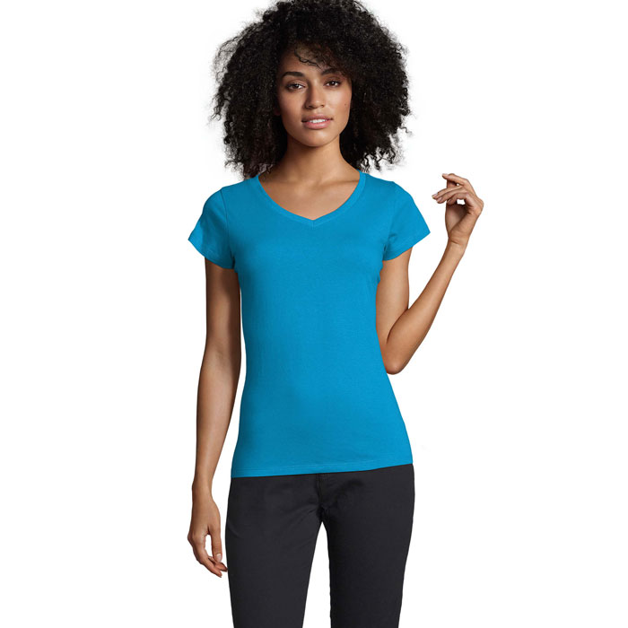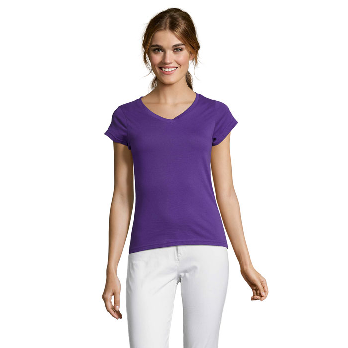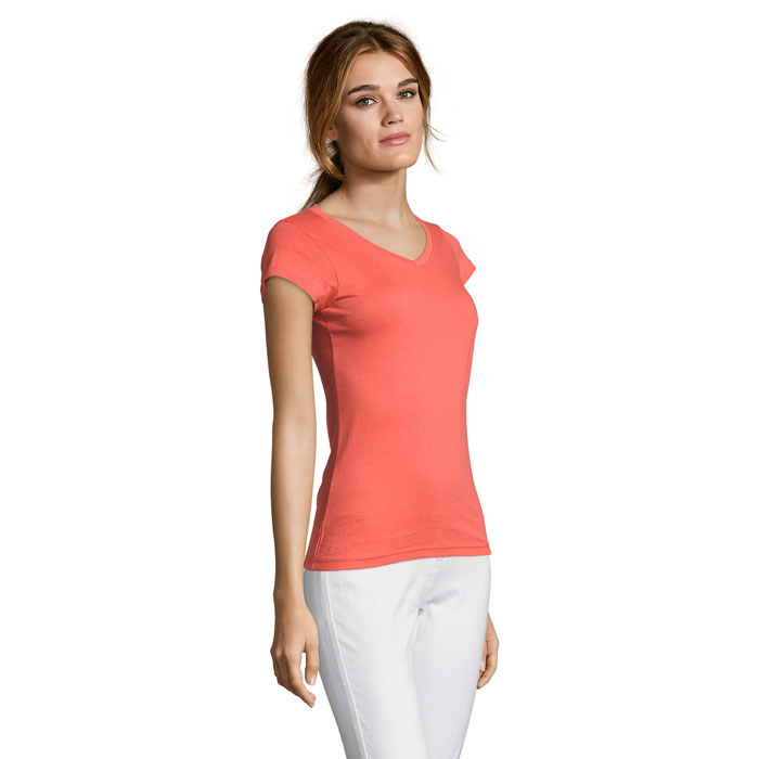 SOL'S MOON Damska koszulka z dekoltem w literę V, nieco głębszym dekoltem w literę V i wzmocnionym szwem, dopasowanym kroju z naszytym bocznym szwem. 100% czesana bawełna ringspun 150g / m². .
