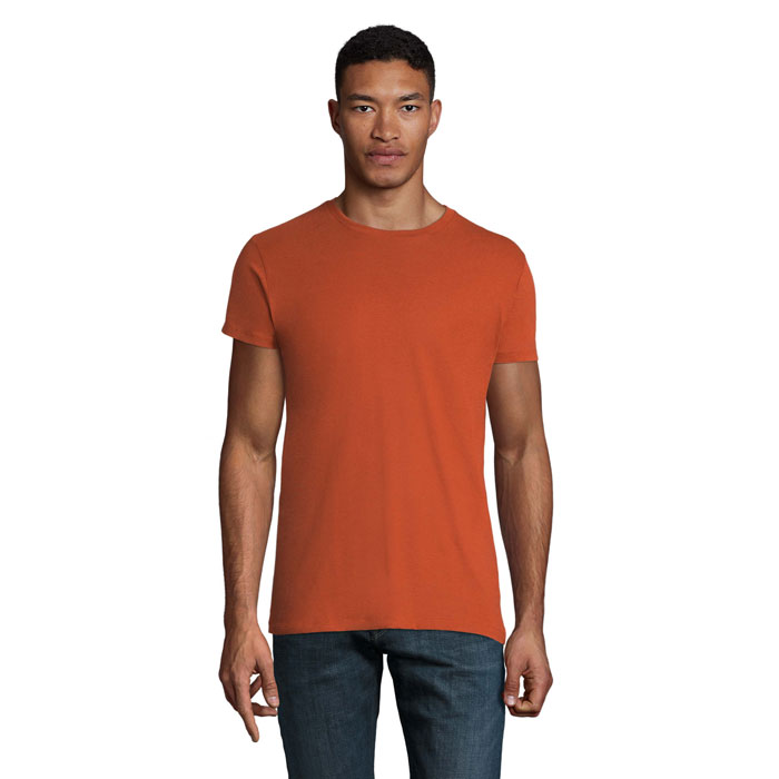 SOL'S REGENT FIT Męski T-shirt 150g/m². Doskonały stosunek ceny do jakości. Dopasowany krój, krótki rękaw. Kołnierz prążkowany z dodatkiem elastanu. Posiada metkę z rozmiarem, bez logo producenta. Szew boczny. 100% bawełna single jersey. OEKO-TEX. Rozmiar: XS-XXL.