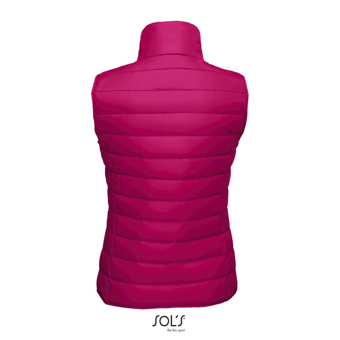 Damska kamizelka SOL'S WAVE z lekkiego materiału. Zapewnia większą swobodę ruchów. Materiał odporny na wiatr i wodę, 2 kieszenie ze stylowymi zamkami błyskawicznymi i dopasowaną kolorystycznie podszewką, wysoki kołnierz, stylowy krój, wzmocnienie tonacji w dole. Tkanina 100% nylon, podszewka 100% nylon, wypełnienie: 100% poliester - 180g / m2. Rozmiar: S-XXL.